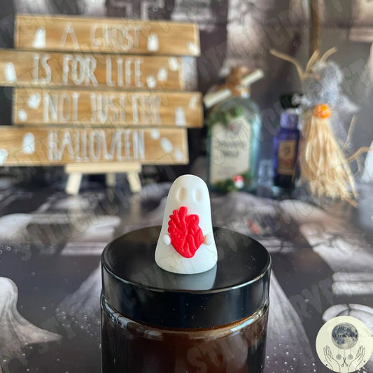 Sheet ghost earrings holding tiny heart with glowing eyes | Handmade to order