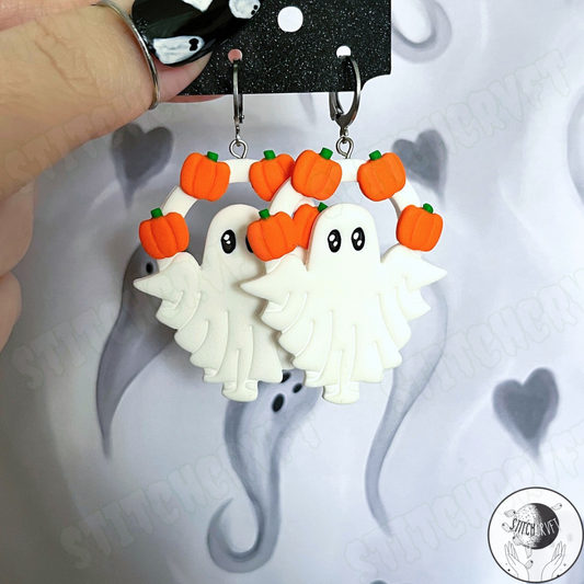 Ghost arch earrings with tiny pumpkins | Handmade to order