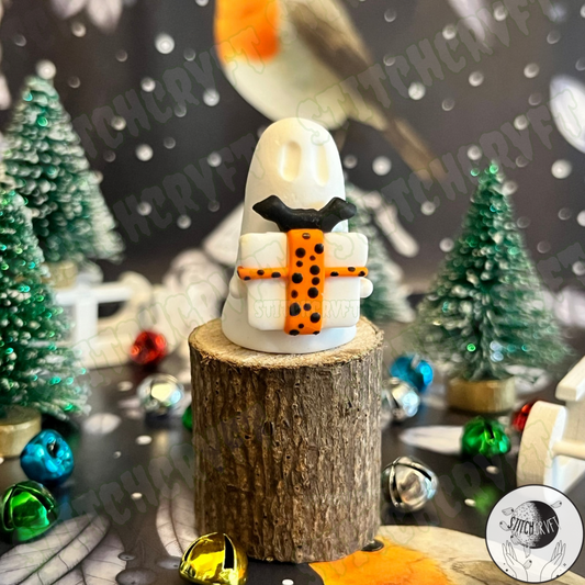 Ghost holding tiny full moon (glowing and non glowing) | Handmade to order