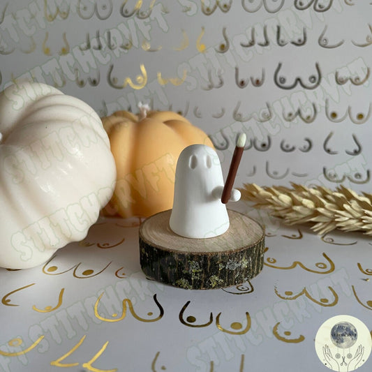 Ghost holding wand with glowing tip | Handmade to order