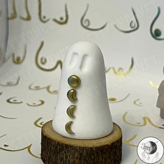 Ghost holding tiny full moon (glowing and non glowing) | Handmade to order