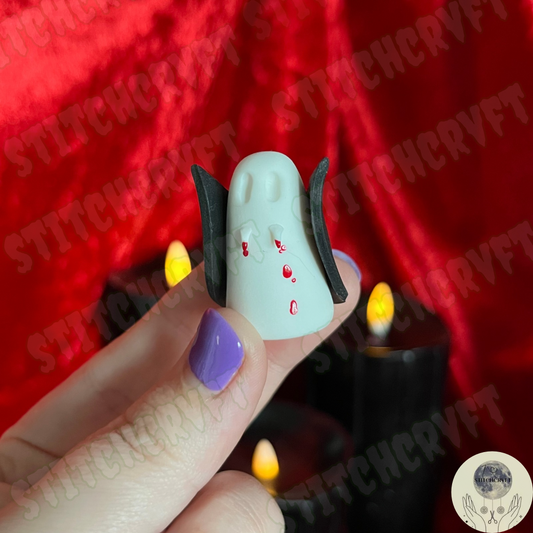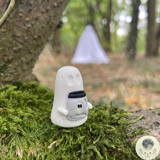 Ghost holding tiny vintage trick or treat bucket | Handmade to order