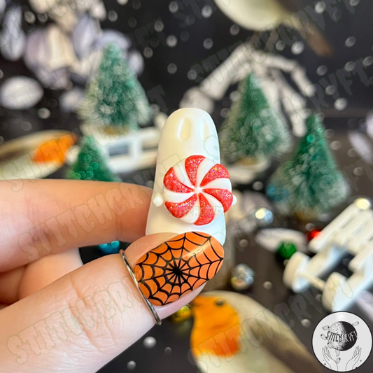 Ghost holding tiny peppermint swirl candy | Handmade to order