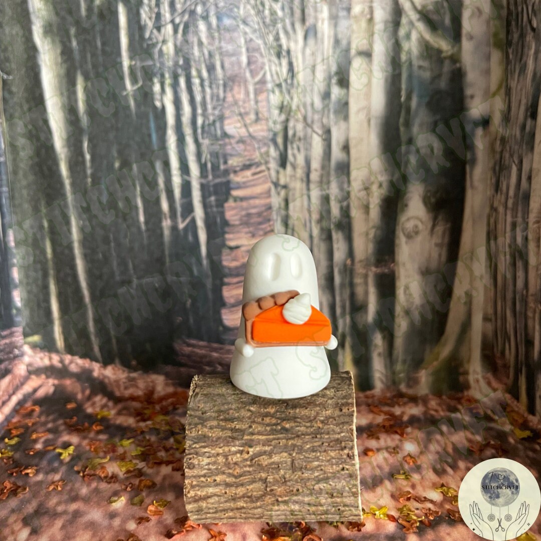 Ghost holding tiny pumpkin pie slice | Handmade to order