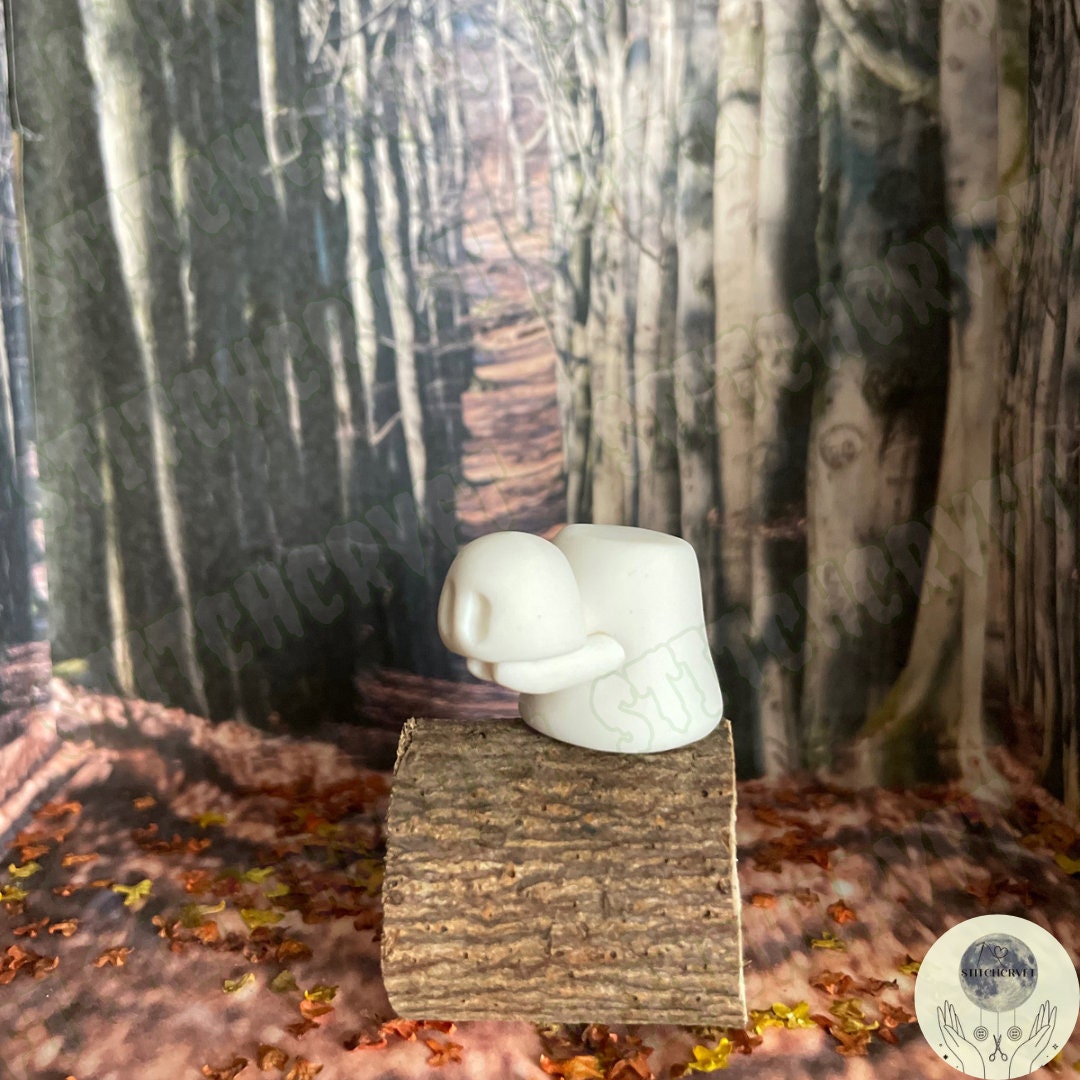 Perfect for a gift or for a tiny spooky companion. Also available with a little log slice for them to perch on.