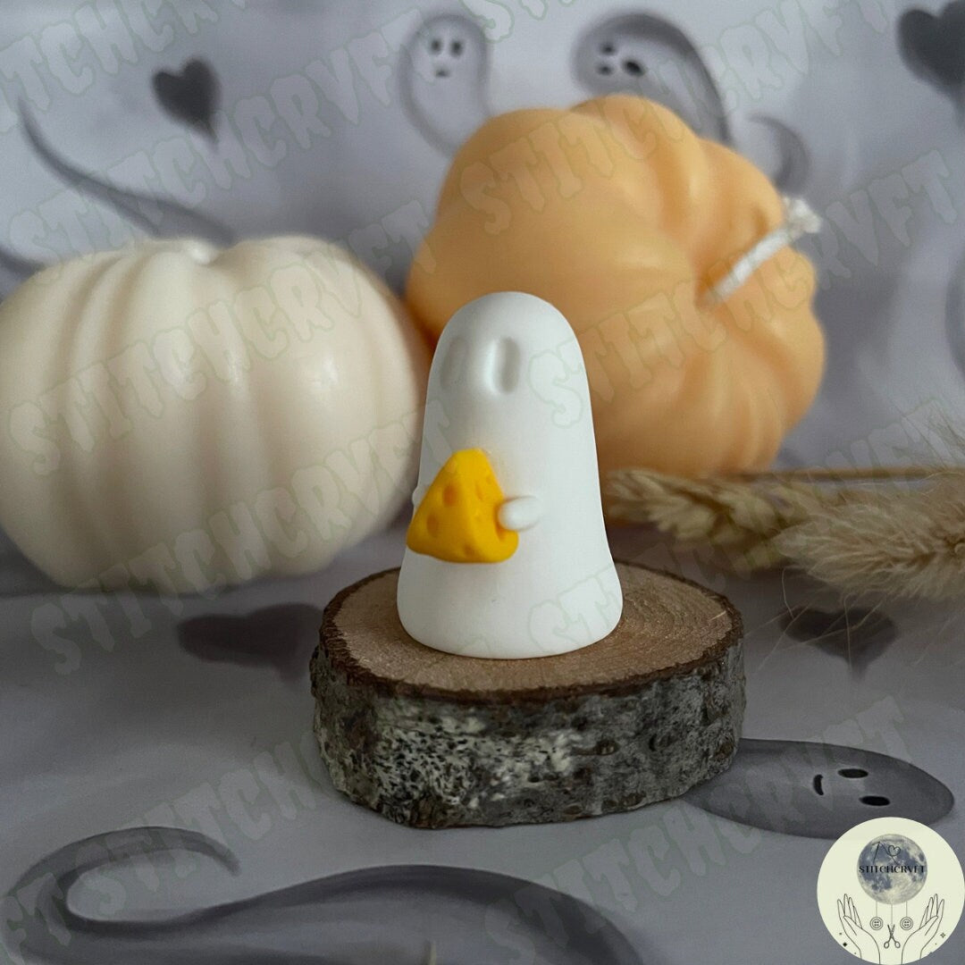 Ghost holding tiny cheese wedge | Handmade to order