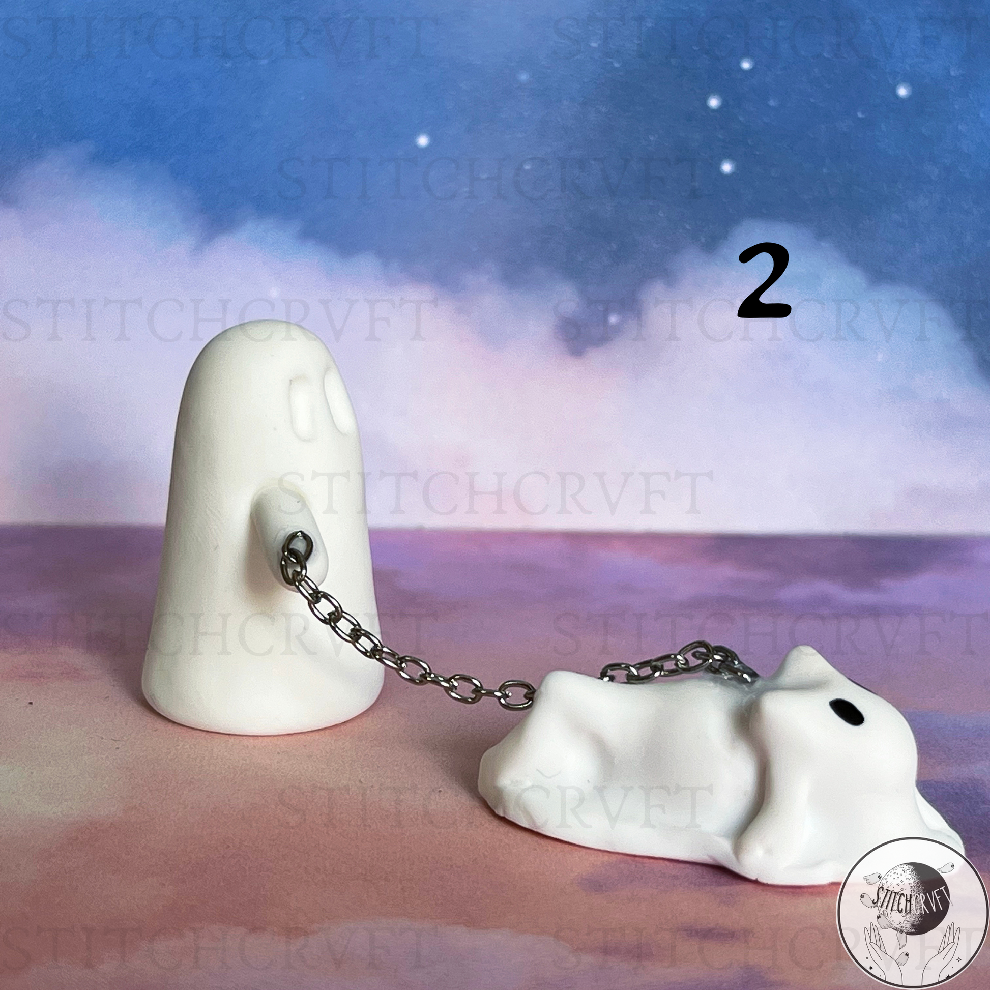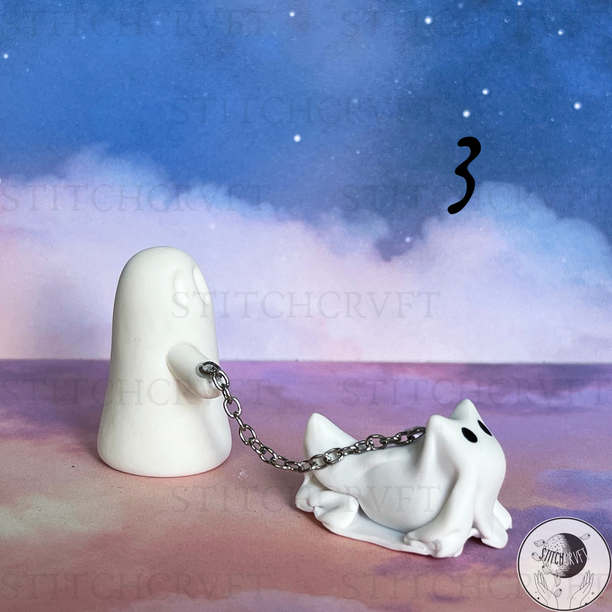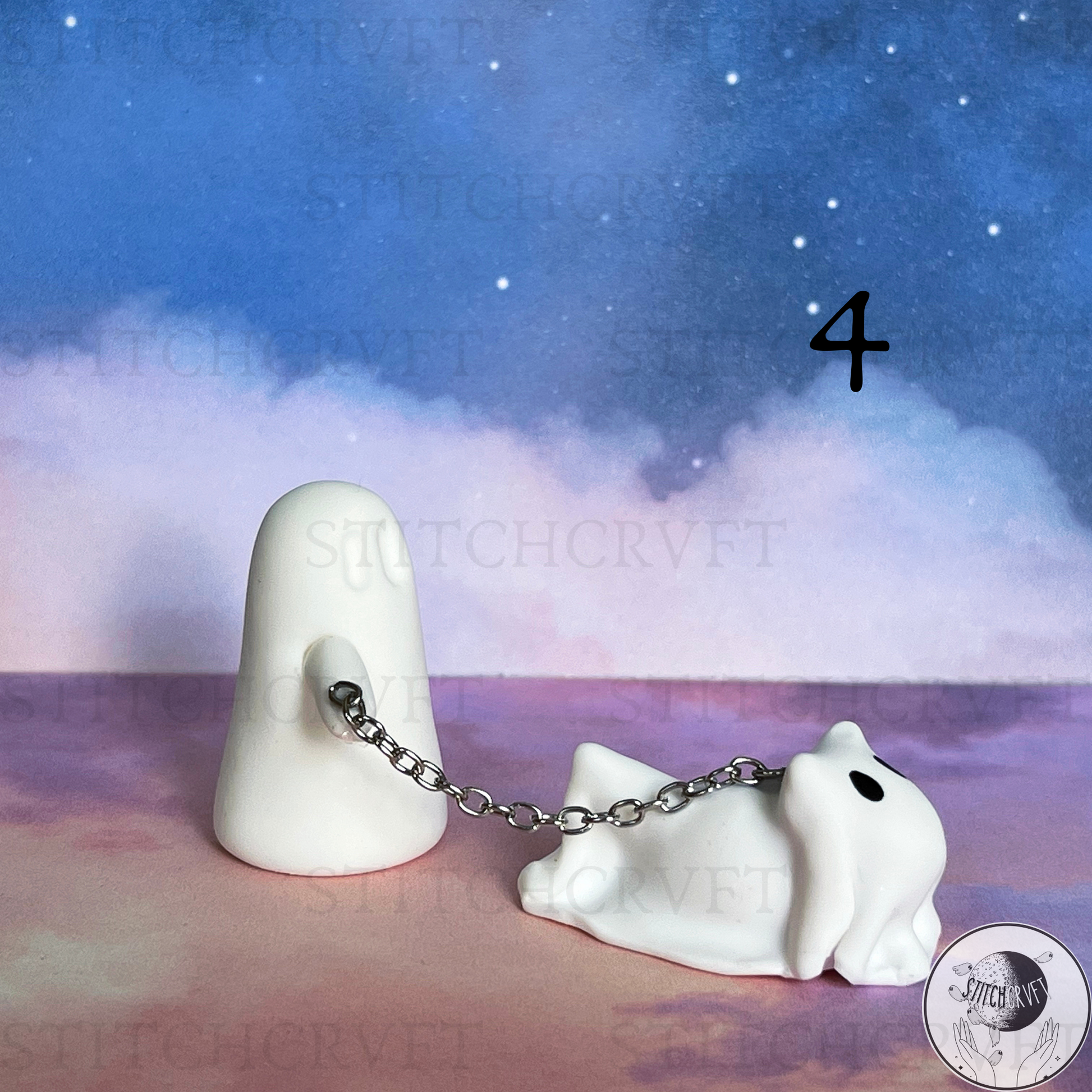 These floating ghosties still have to walk their ghost dogs and these ghosts have a cute little silver chain leash so that their pets don't float away!