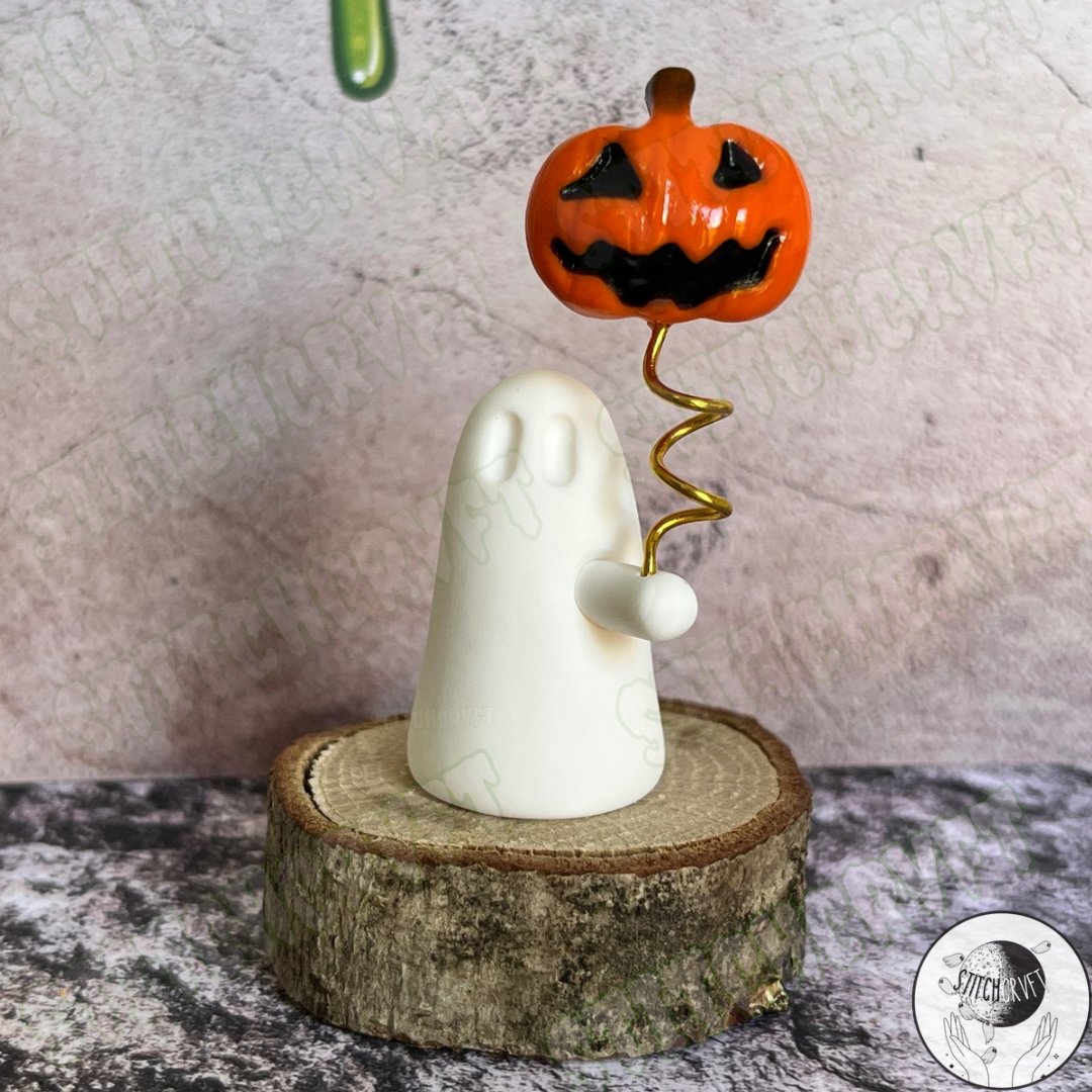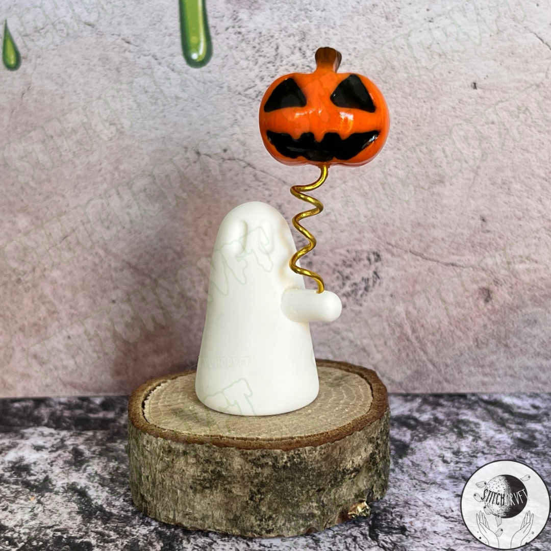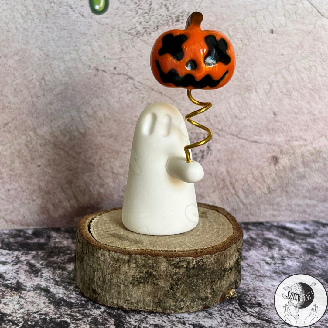 Ghost holding pumpkin balloon | Made to order