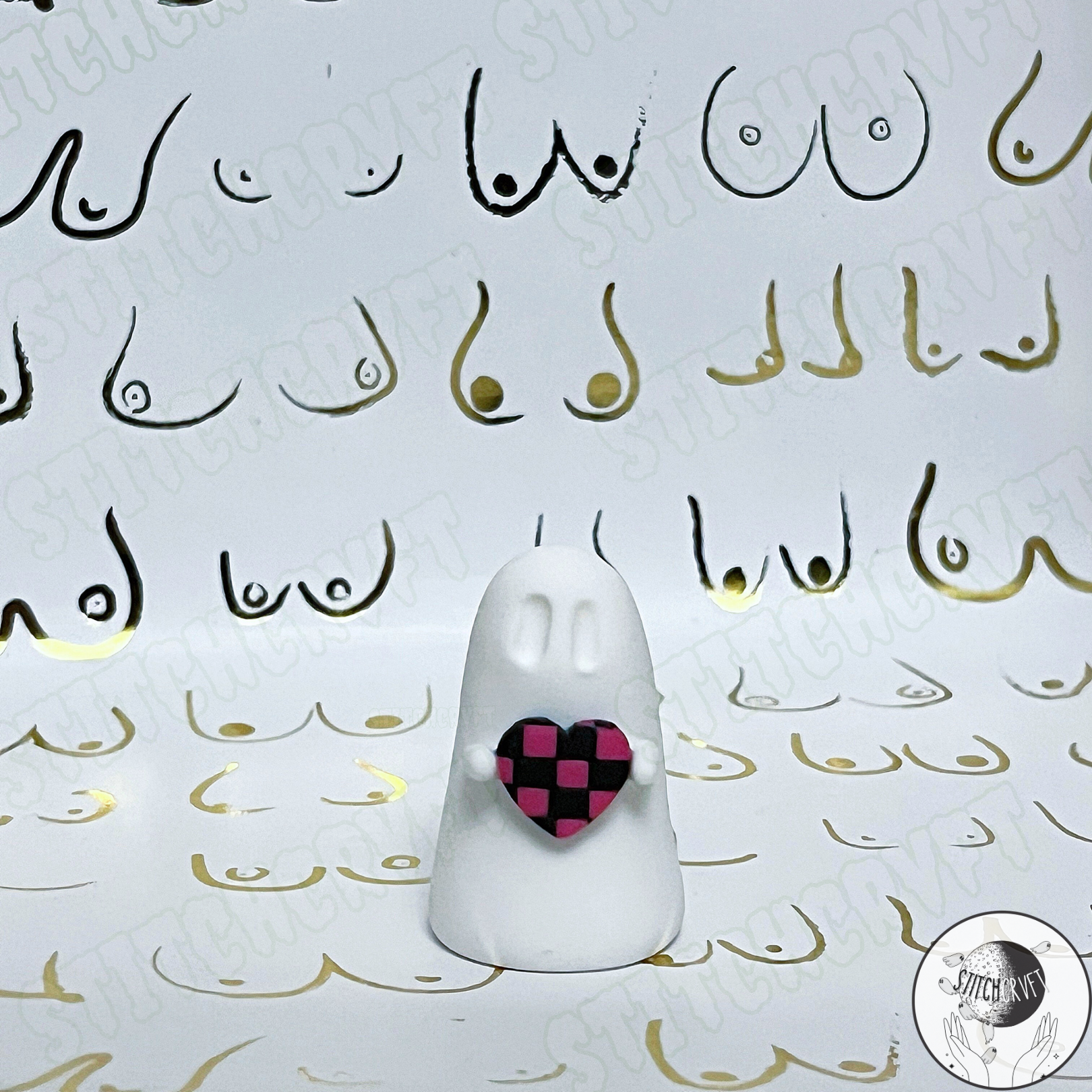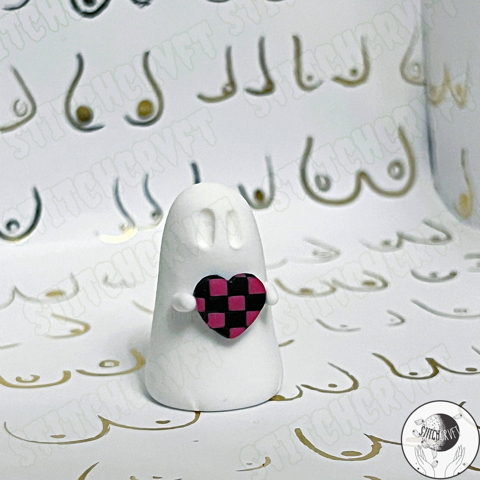 Ghost holding tiny chequered heart | Limited small batch