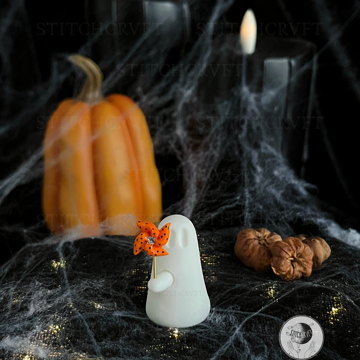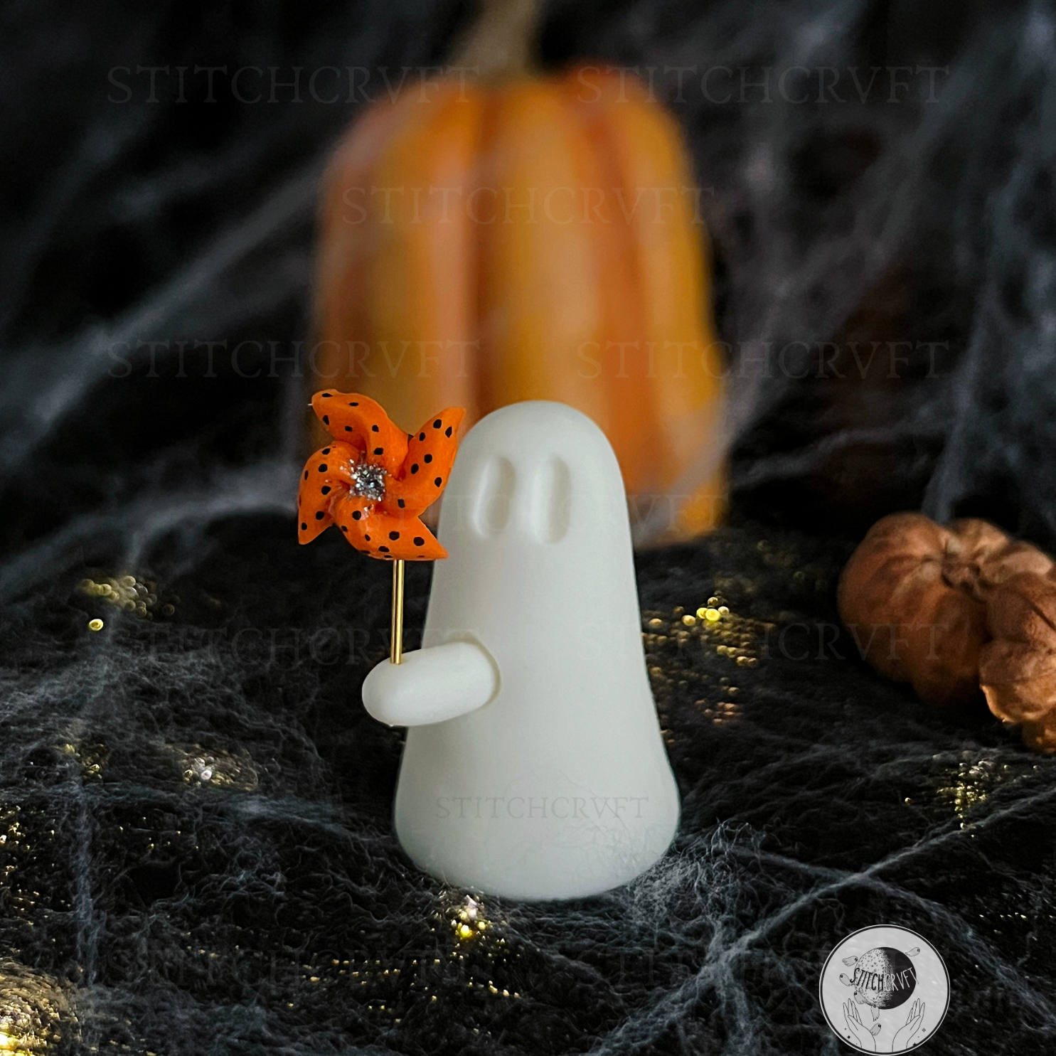 Ghost holding tiny spinning pinwheel | Handmade to order