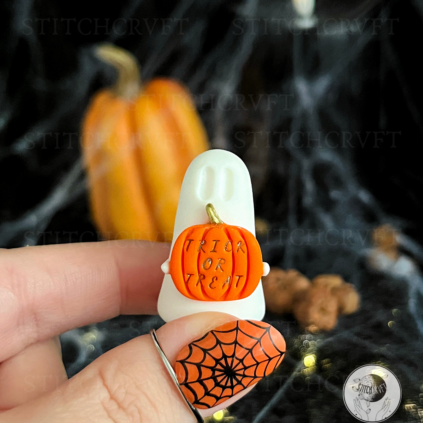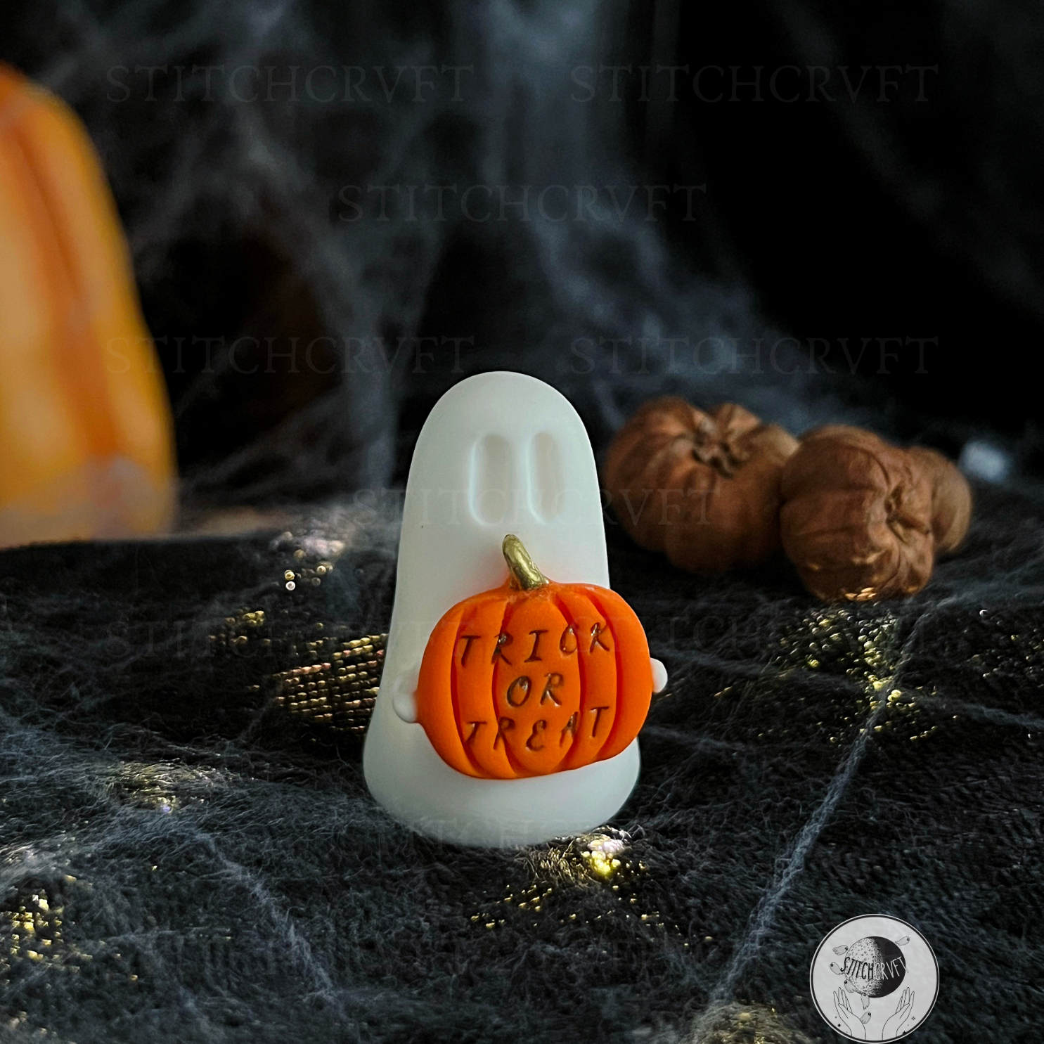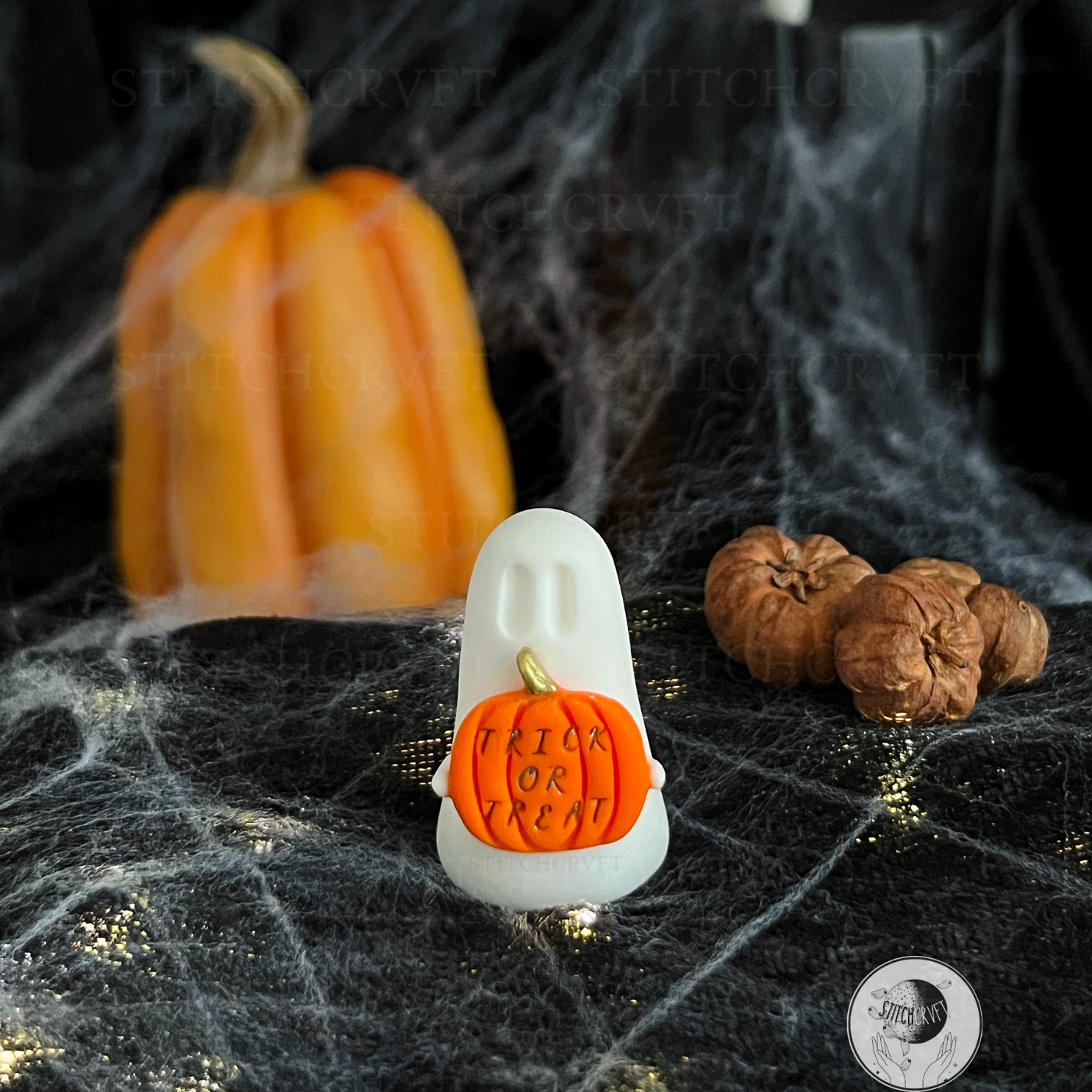 Ghost holding tiny trick of treat pumpkin | Handmade to order