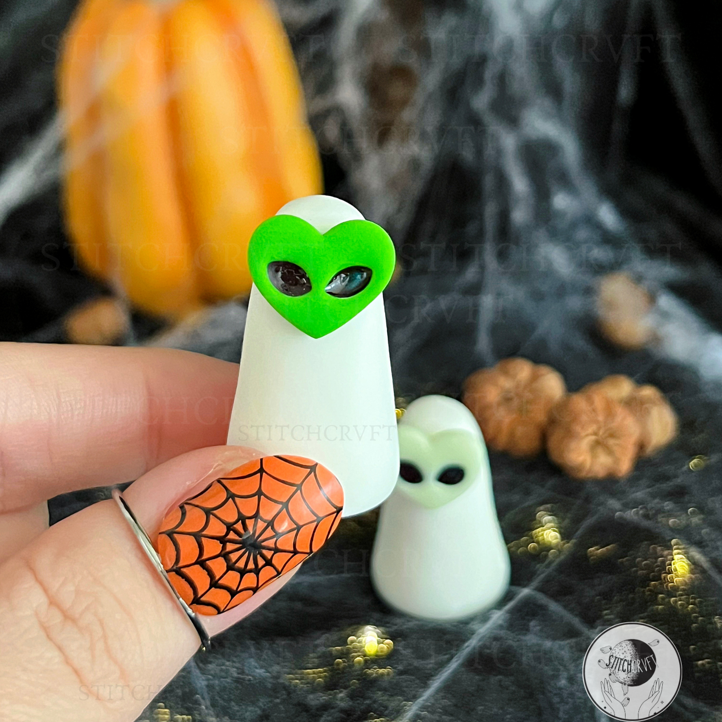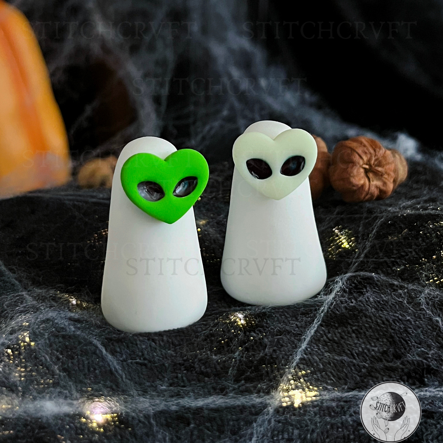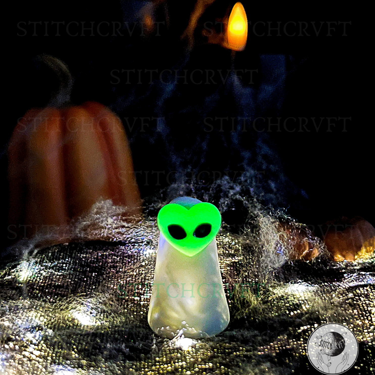 Ghost wearing alien heart mask | Green or glowing | Handmade to order