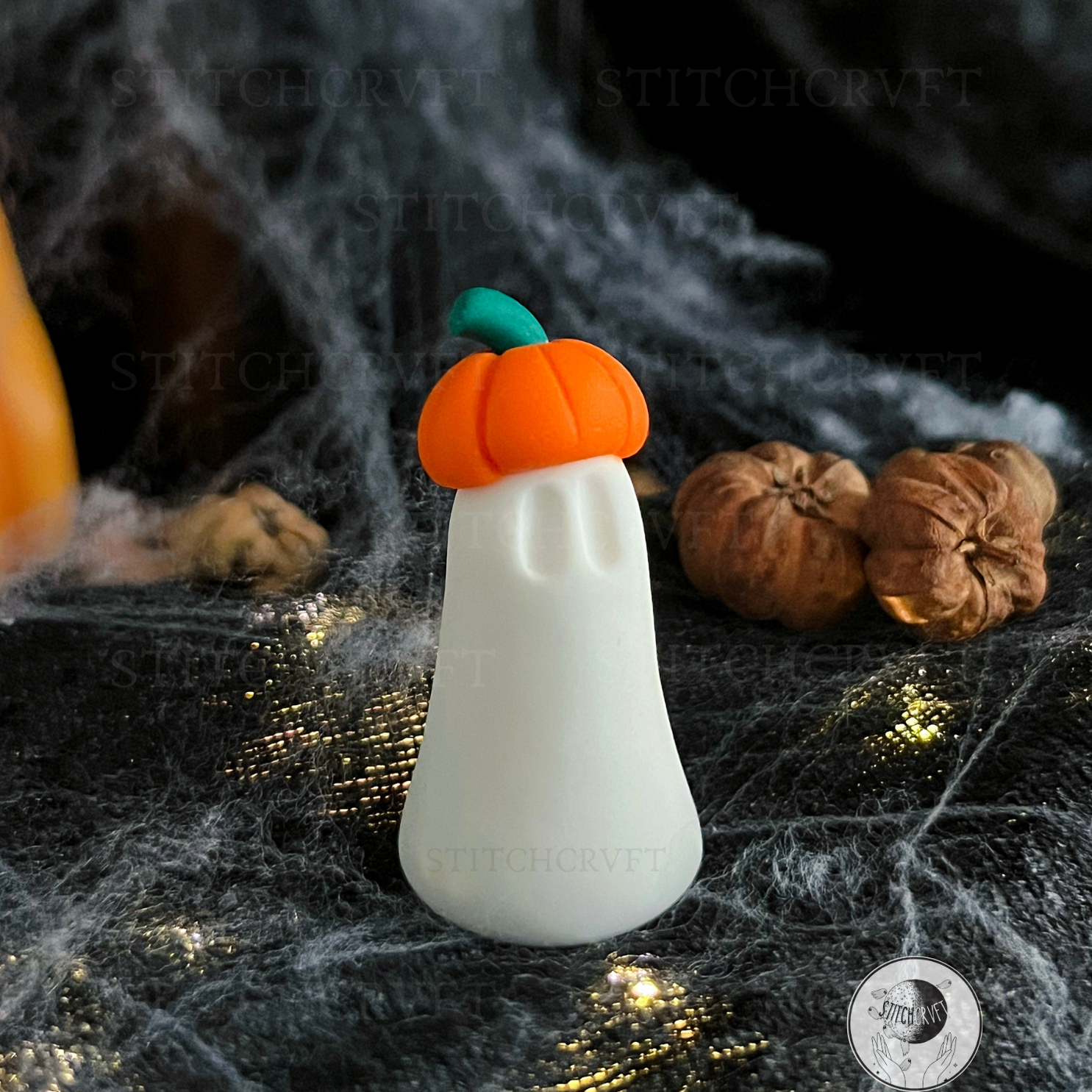 Ghost wearing pumpkin hat | Handmade to order